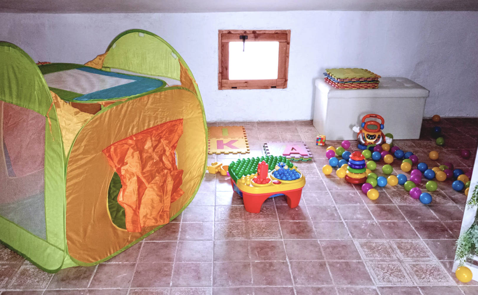 Subiendo a la tercera planta nos encontramos con la buhardilla dedicada a sala de estar y sala de juegos, en la que podrás encontrar algunos juegos de mesa para niños y adultos.