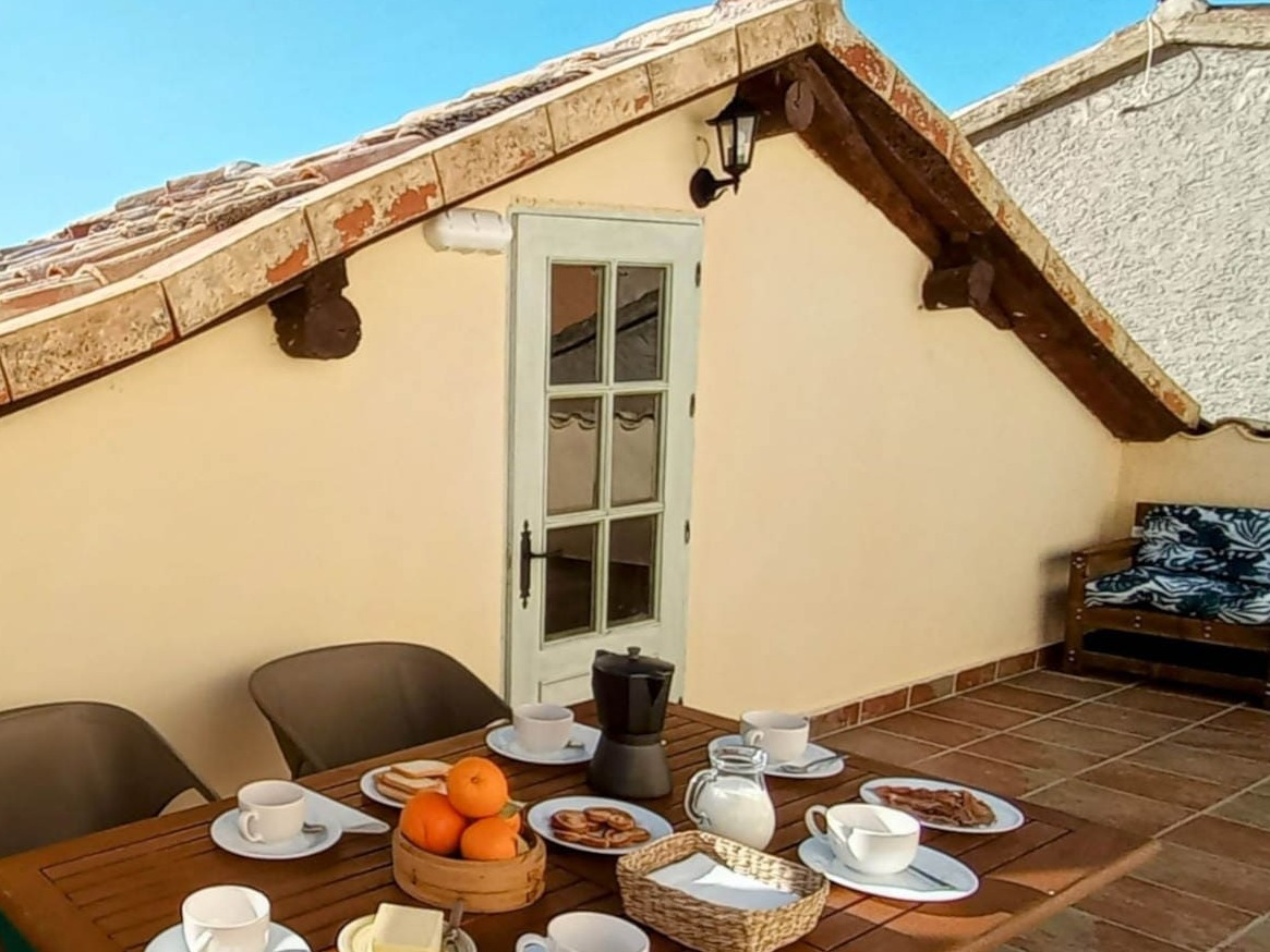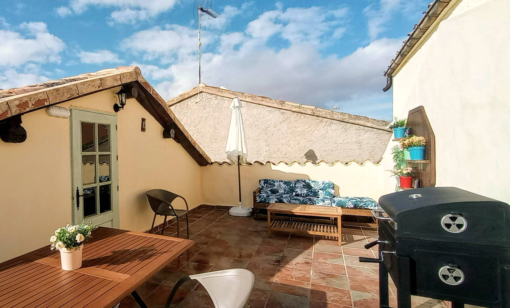 Desde la buhardilla tenemos acceso a la terraza, equipada con mesas y asientos donde disfrutar de las frescas noches en verano o los soleados días de invierno. Dispone de barbacoa de carbón.